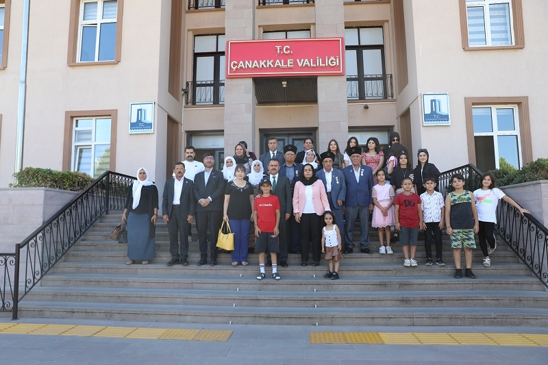 Türkiye Gaziler ve Şehit Aileleri Vakfı Şırnak İli Cizre İlçesi temsilcisi Zeynep Caner ve üyeleri Vali İlhami Aktaş’ı ziyaret ettiler. Türkiye Gaziler ve Şehit Aileleri Vakfı Çanakkale Şubesi Başkanı Gülşen Uz’un da bulunduğu ziyarette Vali İlhami Aktaş, Türkiye Gaziler ve Şehit Aileleri Vakfı Cizre temsilcisi Zeynep Caner ve üyeler ile bir süre görüşerek sohbet etti. Türkiye Gaziler ve Şehit Aileleri Vakfı Cizre temsilcisi Zeynep Caner ve üyeleri Çanakkale’de bulunmaktan duydukları memnuniyeti dile getirerek Vali İlhami Aktaş’a desteklerinden ve misafirperverliğinden dolayı teşekkür ettiler. Ziyaretten duyduğu memnuniyeti dile getirerek teşekkür ve minnet duygularını ifade eden Vali İlhami Aktaş, Türkiye Gaziler ve Şehit Aileleri Vakfı Cizre temsilcisi Zeynep Caner’e günün anısına minyatür Şehitler Abidesi hediye etti.