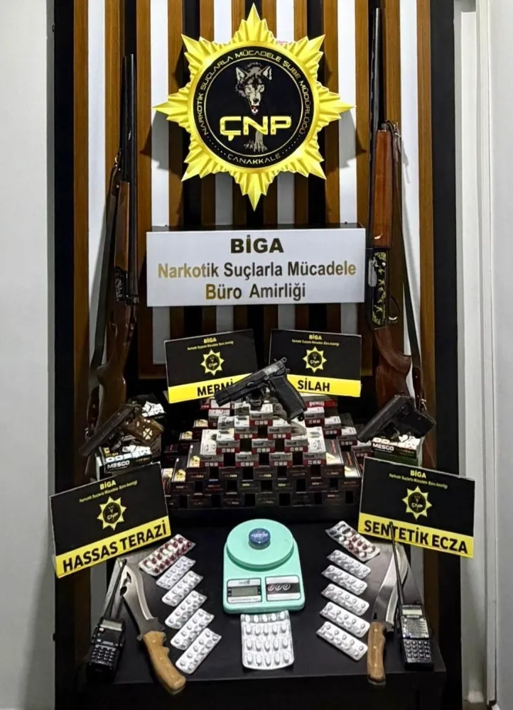 Çanakkale’de emniyet müdürlüğü ekiplerince gerçekleştirilen huzur uygulamalarında uyuşturucu veya uyarıcı madde imal ve ticareti suçundan 2 şüpheli tutuklandı. Çanakkale İl Emniyet Müdürlüğü ekiplerince 9-16 Mart tarihleri arasında il merkezi ve ilçelerde yapılan huzur uygulamalarında, 10 bin 165 şahıs, 4 bin 95 araç incelenmiş olup farklı suçlardan aranması bulunan 31 şahıs yakalandı, 725 araç sürücüsüne idari trafik para cezası uygulandı. Toplamda 264,08 gram narkotik madde, 172 uyuşturucu hap, 3 ruhsatsız tabanca, 2 av tüfeği, 2 bin 827 av tüfeği fişeği, 2 hassas terazi, 2 el telsizi, uyuşturucu ticaretinden elde edilen 27 bin 800 Türk Lirası ele geçirildi. 63 şüpheli şahsa adli işlem yapıldı. İçlerinden uyuşturucu veya uyarıcı madde imal ve ticareti suçundan 2 şüpheli tutuklandı. İkamette kumar oynattıkları tespit edilen 2 şahıs yakalandı ve adli makamlarca tutuklandı. Kumar oynadıkları tespit edilen 16 şahsa idari işlem yapıldı. Ayrıca kumar oyununda kullanılan 49 adet iskambil kağıdı ile 87 bin 350 Türk Lirası ve 2 çeyrek altın ele geçirildi. Kamu huzurunu bozacak şekilde davranışlarda bulunan 40 şahıs hakkında Kabahatler Kanunu hükümlerince idari yaptırım uygulandı. Çanakkale genelinde kaçakçılık faaliyetlerinin deşifre edilmesine yönelik yapılan çalışmalarda, 2 şüpheli şahsa ait 1 ikamet ve 1 iş yerinde yapılan aramalarda; 1 adet elektronik sigara sarma makinesi, 1 adet kompresör, 3 adet kompresör motoru, 198 bin 200 adet boş makaron, 14 bin 700 adet doldurulmuş makaron, 114 paket tütün, 12 kilo açık kıyılmış tütün ele geçirildi.