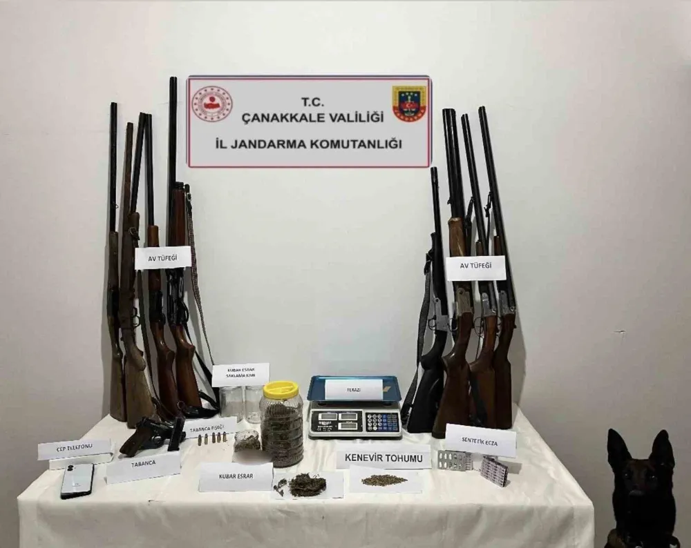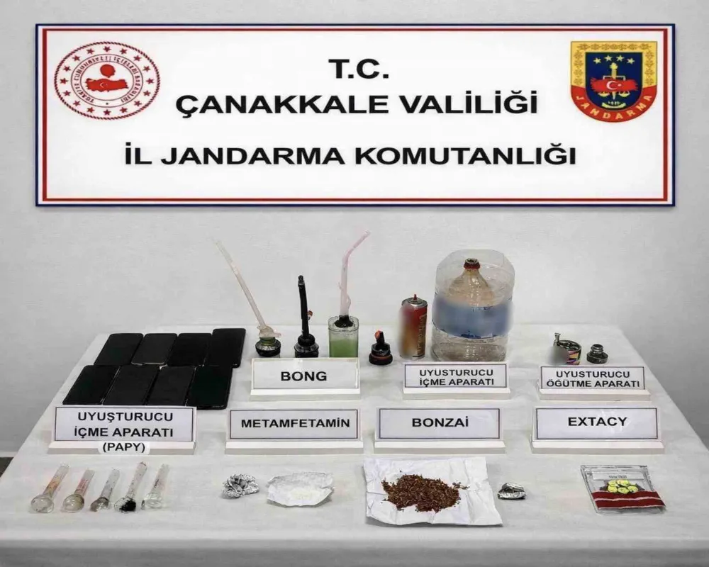 Çanakkale’de jandarma ekiplerince gerçekleştirilen operasyonlarda 28 şüpheli yakalandı. Çanakkale İl Jandarma Komutanlığı ekiplerince Uyuşturucu ve Uyarıcı Madde ile Mücadele çerçevesinde, Çanakkale Cumhuriyet Başsavcılığı koordinesinde 20-27 Ocak tarihleri arasında sorumluluk bölgesinde operasyonlar gerçekleştirildi. Uyuşturucu suçlarına yönelik Narkotik Vaka Analiz Sistemi (NARVAS) üzerinden icra edilen 150 uygulamada yapılan 4 bin 760 şahıs ve bin 232 araç sorgulandı. Denetimler sonucunda Uyuşturucu veya Uyarıcı Madde İmal ve Ticareti yaptıkları ve kullandıkları tespit edilen 28 şüpheliye ait 15 adreste adli makamlardan alınan arama kararı doğrultusunda narkotik köpeğinin de katılımıyla 78 personel ile 15 operasyon gerçekleştirildi. Gerçekleştirilen aramalarda; 910 gram kubar esrar, 25 gram sentetik kannabinoid (bonzai), 16 gram metamfetamin, 35 gram kenevir tohumu, 91 adet sentetik ecza, 5 adet ecstasy, 2 adet hassas terazi, 9 milimetre çaplı ruhsatsız tabanca, 10 adet 9 milimetre çaplı tabanca fişeği, 10 adet ruhsatsız av tüfeği, 7 adet uyuşturucu kullanma aparatı (payp), 3 adet uyuşturucu kullanma aparatı (bong), 4 adet uyuşturucu öğütme aparatı, 4 adet uyuşturucu madde paketleme ve fişeklemede kullanılan naylon poşet ve 12 adet cep telefonu ele geçirildi. Yapılan operasyonlar neticesinde 28 şüpheli yakalanarak haklarında Uyuşturucu veya Uyarıcı Madde İmal ve Ticareti’, Uyuşturucu veya Uyarıcı Madde Kullanmak, Bulundurmak’, ‘6136 Sayılı Ateşli Silahlar ve Bıçaklar ile Diğer Aletler Hakkında Kanuna Muhalefet’ suçları kapsamında adli işlem başlatıldı. Uyuşturucu veya Uyarıcı Madde İmal ve Ticareti’ suçundan adli makamlara sevk edilen 1 şüpheli adli kontrol kararıyla serbest bırakılırken 2 şüpheli ise çıkarıldığı mahkemece tutuklanarak Çanakkale Kapalı Ceza İnfaz Kurumuna sevk edildi.
