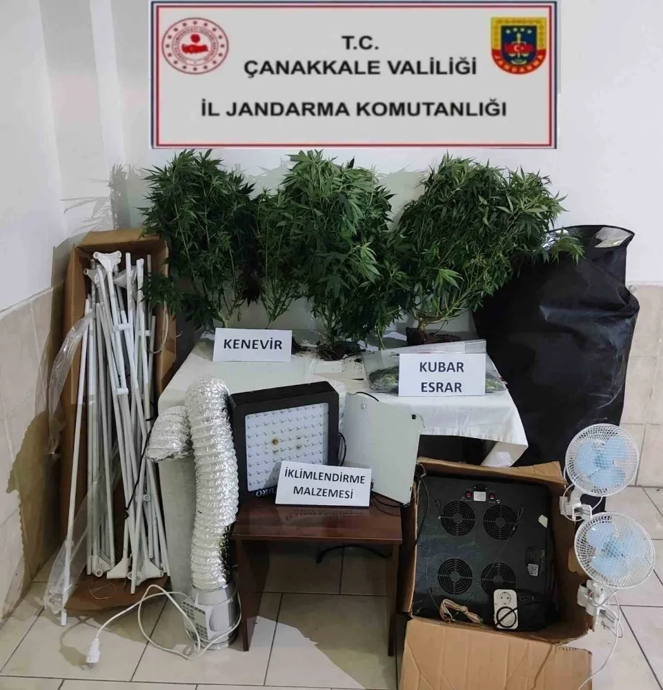 Çanakkale’de jandarma ekiplerinin uyuşturucu operasyonunda gözaltına alınan 2 şüpheli, ’uyuşturucu veya uyarıcı madde imal ve ticareti’ suçundan tutuklandı. Çanakkale İl Jandarma Komutanlığı tarafından uyuşturucu ve uyarıcı madde ile mücadele kapsamında, Çanakkale ve Biga Cumhuriyet Başsavcılığı koordinesinde 8-9 Mart 2026 tarihlerinde uyuşturucu suçlarına yönelik 15 uygulamada 80 şahıs ve 35 araç sorgulandı. Uyuşturucu veya uyarıcı madde imal ve ticareti yaptıkları ve kullandıkları tespit edilen 2 şüpheliye ait 2 adreste adli makamlardan alınan arama kararı doğrultusunda narkotik köpeğinin de katılımıyla 28 personel ile 2 operasyon gerçekleştirildi. Aramalarda, 400 gram kubar esrar, 6 kök kenevir bitkisi, 5 gram (12 adet fişeklenmiş içime hazır vaziyette) kokain, 13 bin 500 TL suç geliri para, 50 euro suç geliri para, 21 deste iskambil kağıdı, para kayıt defteri, 2 cep telefonu, muhtelif cins ve miktarlarda iklimlendirme malzemeleri ele geçirildi. Yapılan operasyonlar neticesinde 14 şüpheli yakalanarak haklarında uyuşturucu veya uyarıcı madde imal ve ticareti, uyuşturucu veya uyarıcı madde kullanmak, bulundurmak, 2313 sayılı uyuşturucu maddelerin murakabesi hakkında kanuna muhalefet, kumar oynanması için yer ve imkan sağlama suçları kapsamında adli işlem yapılırken, Kabahatler Kanununun kumar oynamak fiili kapsamında ise idari işlem başlatıldı. Uyuşturucu veya uyarıcı madde imal ve ticareti suçundan adli makamlara sevk edilen 2 şüpheli tutuklandı.