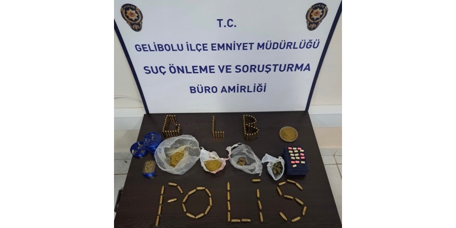 Gelibolu ilçesinde polis tarafından düzenlenen uyuşturucu operasyonunda 2 şüpheli tutuklandı. Gelibolu ilçe Emniyet Müdürlüğü Suç Önleme ve Soruşturma Büro Amirliği ekipleri uyuşturucu madde satışına yönelik çalışma çerçevesinde şüpheli Ç. Ş. üzerinde yapılan aramada uyuşturucu madde ele geçirdi. Şüphelinin ikametinde yapılan aramada 4.08 gram kubar esrar, 24.62 gram esrar, 15.8 gram skunk, 18.67 gram toz esrar, 16 extacy hap, 100 adet 9.9 mm fişek ele geçirildi. İkamette yapılan arama sırasında T.A. (39) ve B.K. (30) gözaltına alındı. Gözaltına alınan şüphelilerden B.K. işlemlerinin ardından serbest bırakılırken, adliyeye sevk edilen diğer şüpheliler Ç.Ş. ve T.A. tutuklandı.