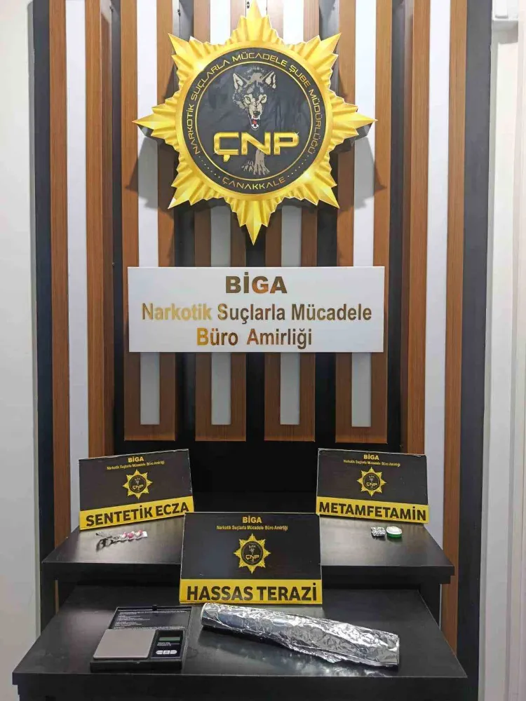 Çanakkale İl Emniyet Müdürlüğü tarafından düzenlenen uyuşturucu operasyonunda yaklaşık 20 bin kullanımlık sentetik kannabinoid, 20,68 gram metamfetamin, 3 adet sentetik ecza, hassas terazi, rulo alüminyum folyo ele geçirilirken, 2 şüpheli tutuklandı. Çanakkale Cumhuriyet Başsavcılığı koordinesinde, İl Emniyet Müdürlüğü Narkotik Suçlarla Mücadele Şube Müdürlüğü ekiplerince il merkezi ve ilçelerde uyuşturucu madde satışı yapan ve kullanan şahıslara yönelik operasyon düzenledi. 2 gün önce Gelibolu ve Çan ilçelerinde gerçekleştirilen operasyonlarda 2 şüpheli gözaltına alındı. Yapılan aramalarda yaklaşık 20 bin kullanımlık sentetik kannabinoid (bonzai) maddesi emdirilmiş 19 adet peçete, 20,68 gram metamfetamin, 3 sentetik ecza, hassas terazi, rulo alüminyum folyo ele geçirildi. Emniyetteki işlemlerinin ardından adli makamlara sevk edilen 2 şüpheli çıkarıldıkları mahkemece tutuklandı.