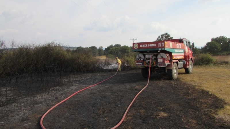 Yenice ilçesine bağlı Ahiler köyünde çıkan anız yangını ekiplerin müdahalesiyle söndürüldü. Bölgede soğutma çalışmaları sürüyor. Ahiler köyüne 300 metre uzaklıktaki tarım arazisinde saat 16.30 sıralarında henüz belirlenemeyen bir nedenle anız yangını çıktı. Dumanları gören vatandaşlar durumu itfaiye ekiplerine bildirdi. Bölgeye, Yenice ve Kalkım Orman İşletme Müdürlüklerine bağlı 1 su ikmal, 2 ilk müdahale ve arazöz gönderildi. Kısa sürede söndürülen yangında 10 dönüm tarım arazisi zarar gördü.